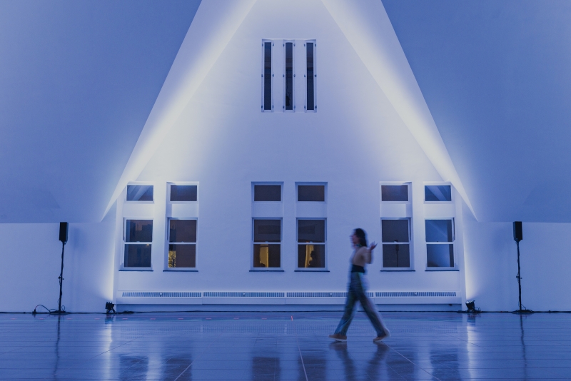 In her performances, sound installations, and inventive works online, Nour Mobarak has turned to the human voice as her material and the moving body as a catalyst or instrument. In this newly commissioned work—unfolding on two consecutive days—Mobarak uses a real-time tracking system to trigger sounds and effects in response to her changing location within the Renaissance Society’s gallery space. What takes shape is a dynamic, immersive 8-channel performance of voice, electronics, and movement.