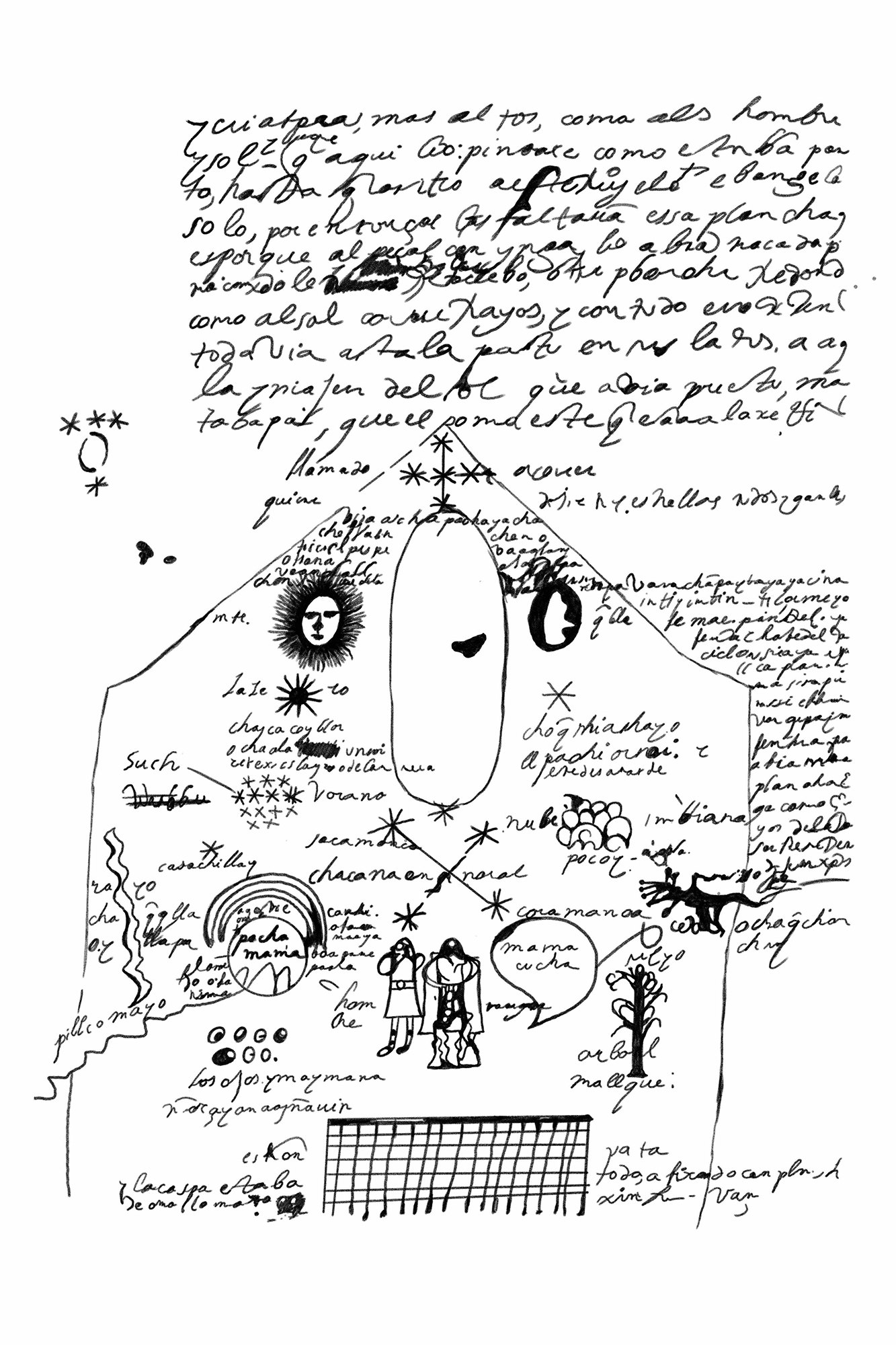 Illustration by Juan de Santa Cruz Pachacuti Yamqui Salcamayhua representing the Inca Cosmovisión. 16th century.