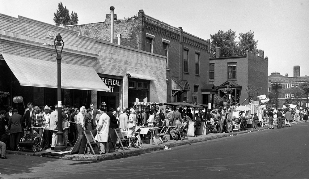 Hyde Park’s 57th Street Art Fair in 1953. Photo by Mildred Mead. University of Chicago Photographic Archive, apf2-03996, Special Collections Research Center, University of Chicago Library.