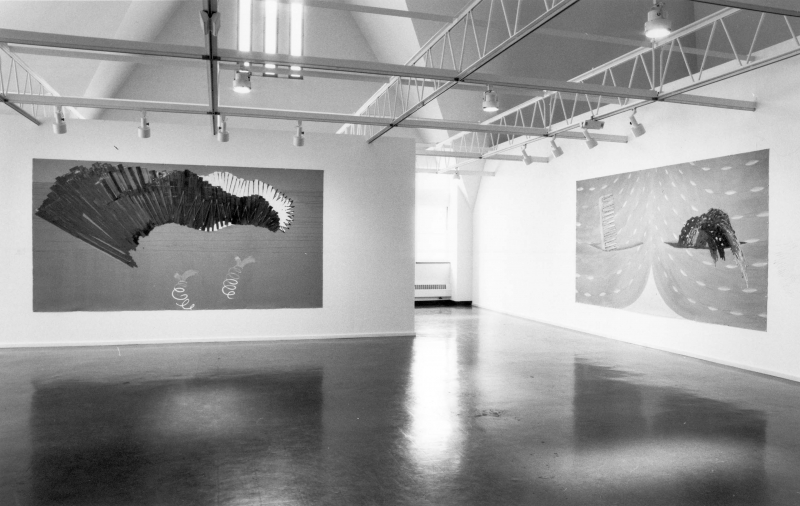 Eiva is the 1980 awardee of the University of Chicago Midway Studios Prize, which is given each year to the outstanding graduate of its Master of Fine Arts program. The prize consists of $500 and an exhibition at The Renaissance Society’s Bergman Gallery. The five enormous canvases on display are an exciting exploration of color, shape and perspective. The artist states: “The paintings are essentially comprised of dualities. They have separate entities, usually two in number, organized on the surface in opposition to each other. I seek to engage the viewer in thinking’s active process by presenting potential situations which offer the flexibility of diverse interpretations and distinction-making.”