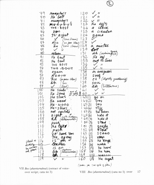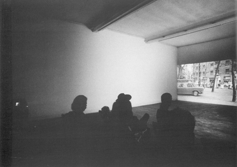 While each work in Coleman’s oeuvre possesses its own distinctive features, one may, for the sake of discussion, observe three seperate phases to date: perceptual installations, 1970-74; installations involving a psychological, social, historical or cultural dimension, 1975-79; and works that take place in a theatrical context, 1980-85. The exhibition, James Coleman: Selected Works, surveys these periods with a represented work from each. Slide Piece, 1973, a slide projection in continuous cylce, with synchronized audiotape, deals with description and memory in relation to time. Box (Ahhareturnabout), 1977, a Super 8 mm black and white film projected in a loop, with synchronized audiotape, dramatizes the historic fight of the 1920s between boxers Tunney and Dempsey as a means to consider contemporary myth and spectacle. So Different…and Yet, 1980, a color video installation is a complex narrative about “self-image” and psychological, social and cultural stereotyping. The exhibition will also feature Living and Presumed Dead, (slides with synchronized audiotape), a 1985 revision of the work’s earlier visual content completed for the Renaissance Society exhibition.