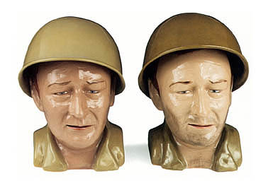 Kim Dingle John Wayne Cookie Jars, 1995 glazed ceramic with china piant Each 14” x 8” x 9” Courtesy of the artist and Blum & Poe, Santa Monica