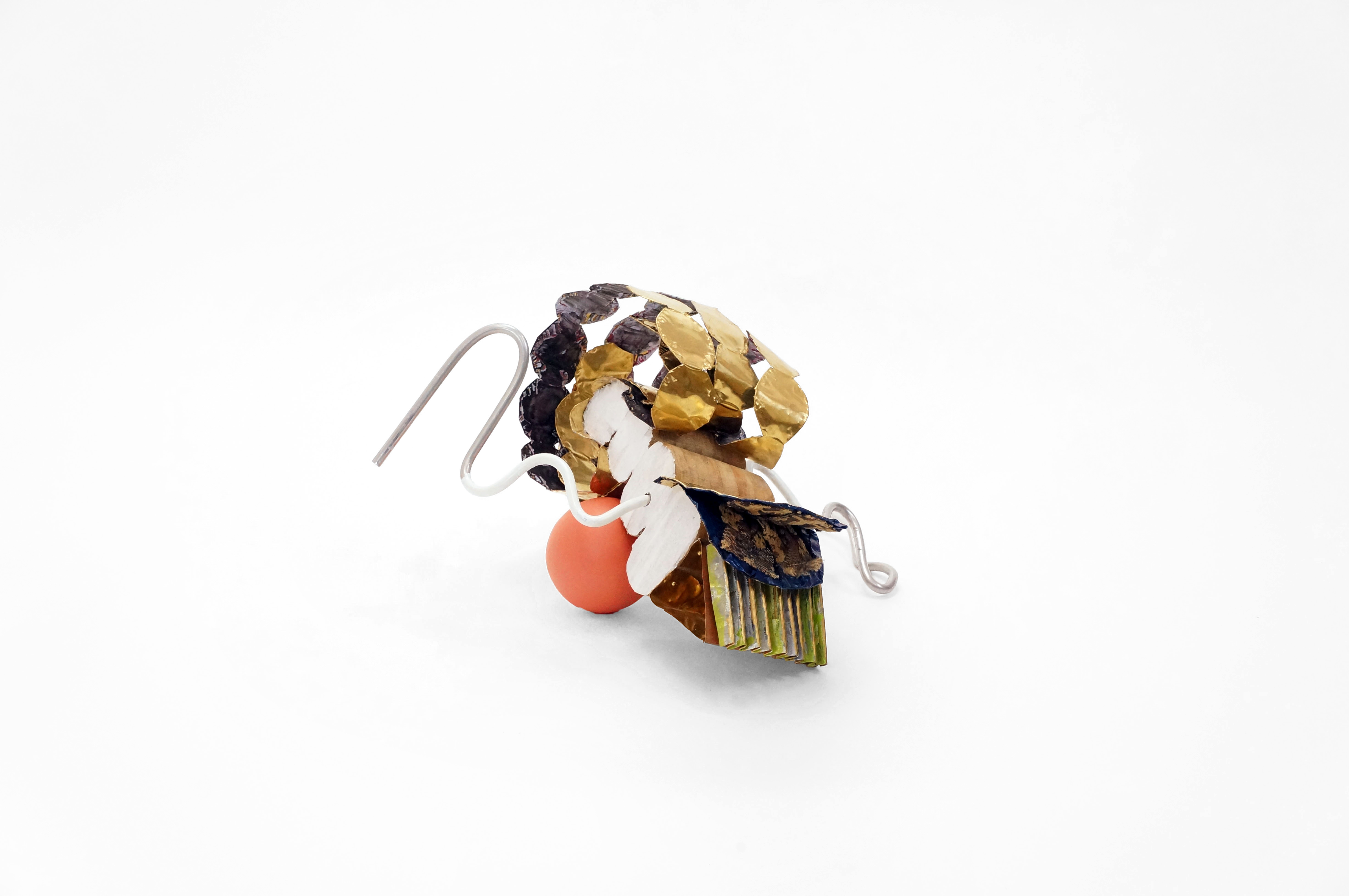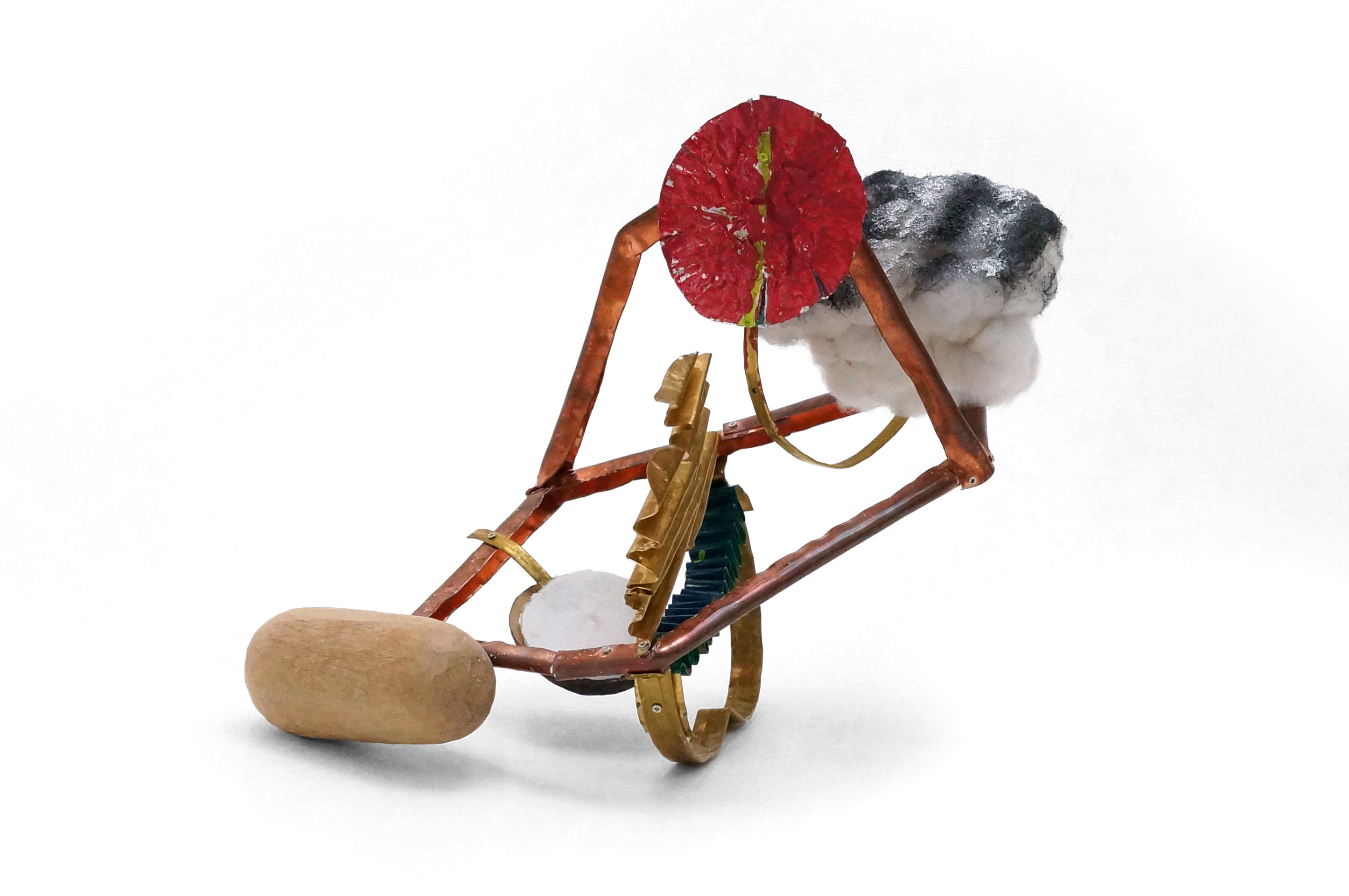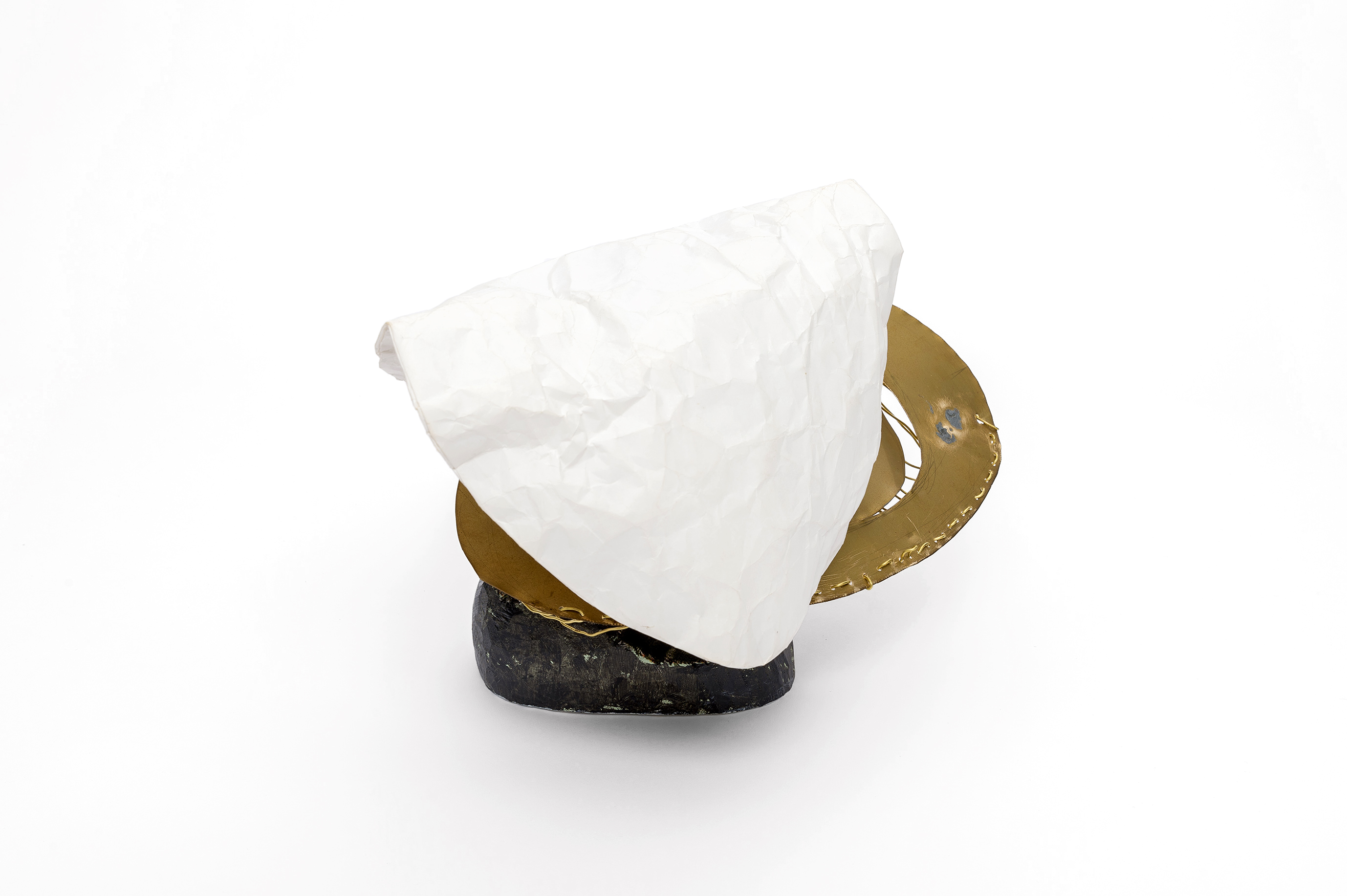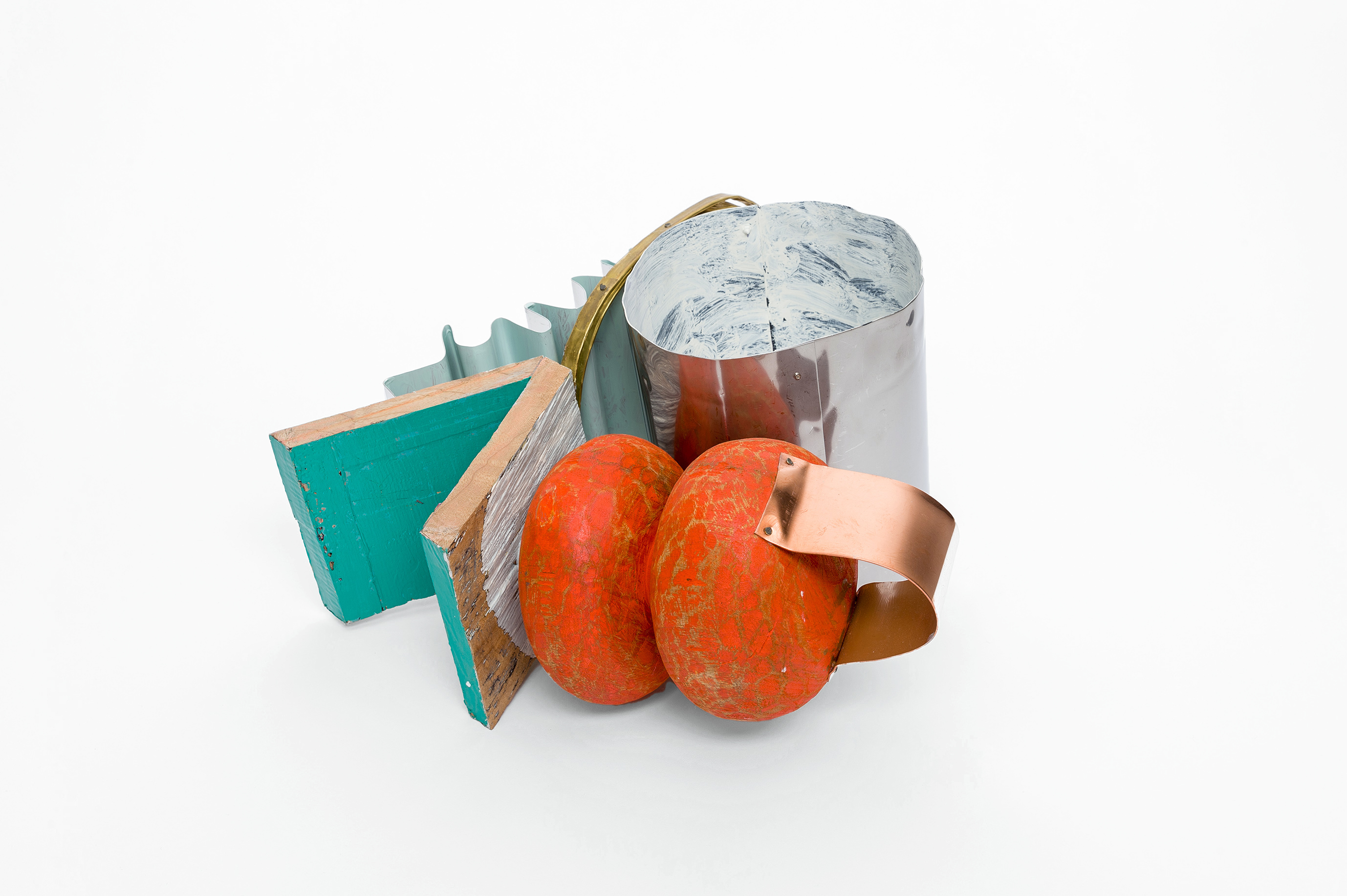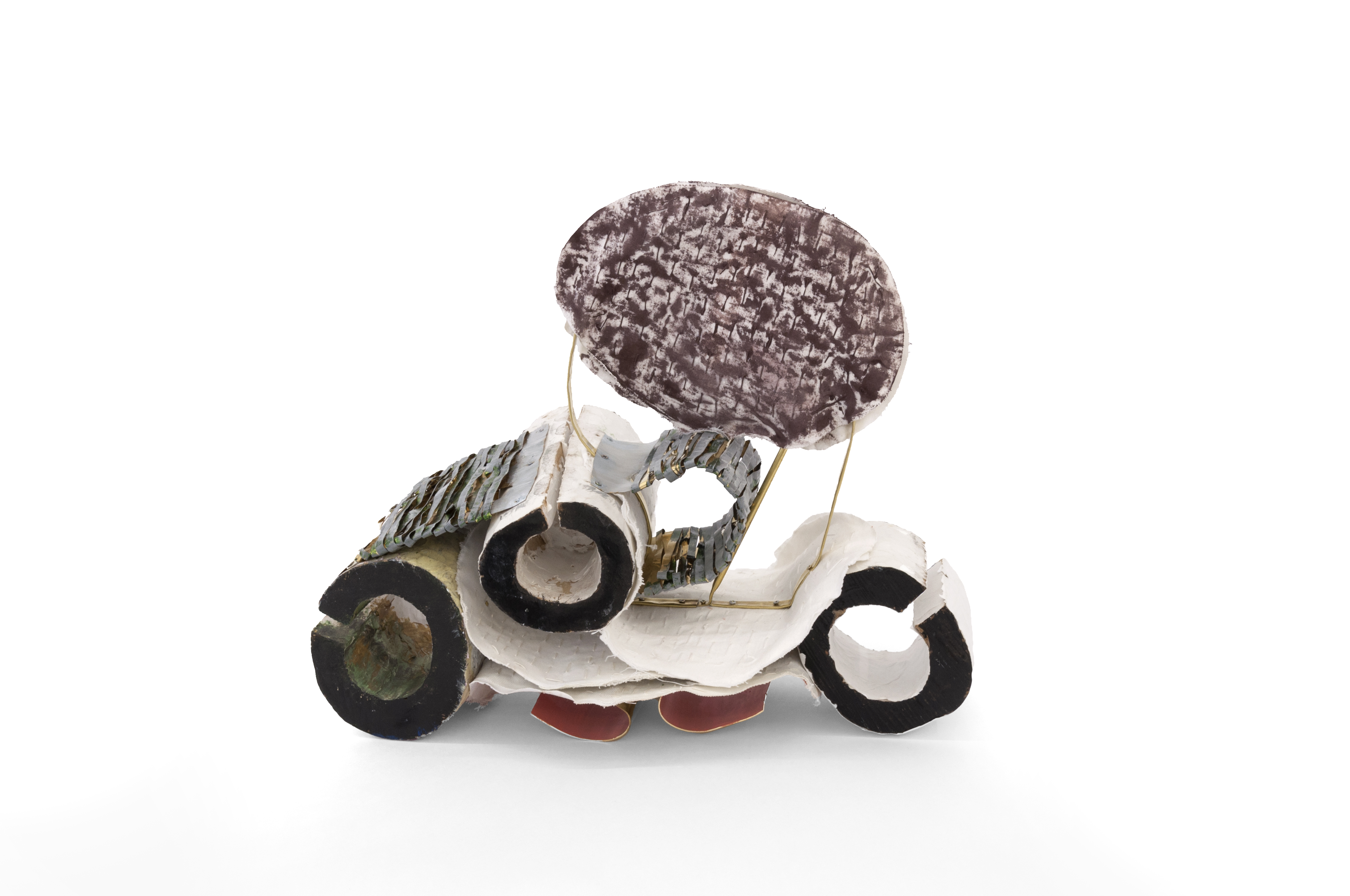 Miho Dohi uses materials such as yarn, wire, fabric, sheet metal, paint, and tape to create what she describes simply as buttai, or objects. Compact and complex, each buttai brings together an idiosyncratic constellation of shapes and surfaces, conjoined in subtle or playful juxtapositions.