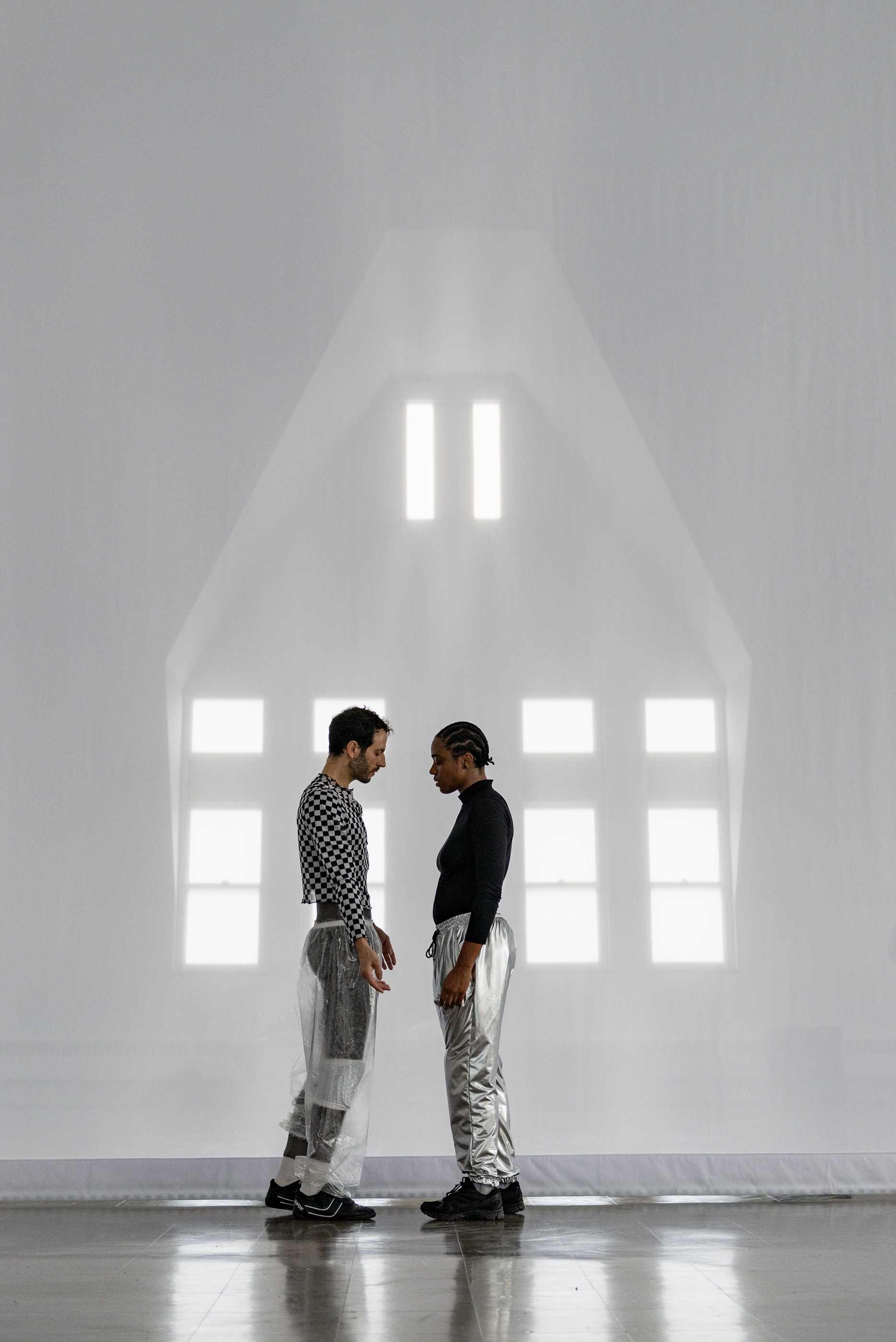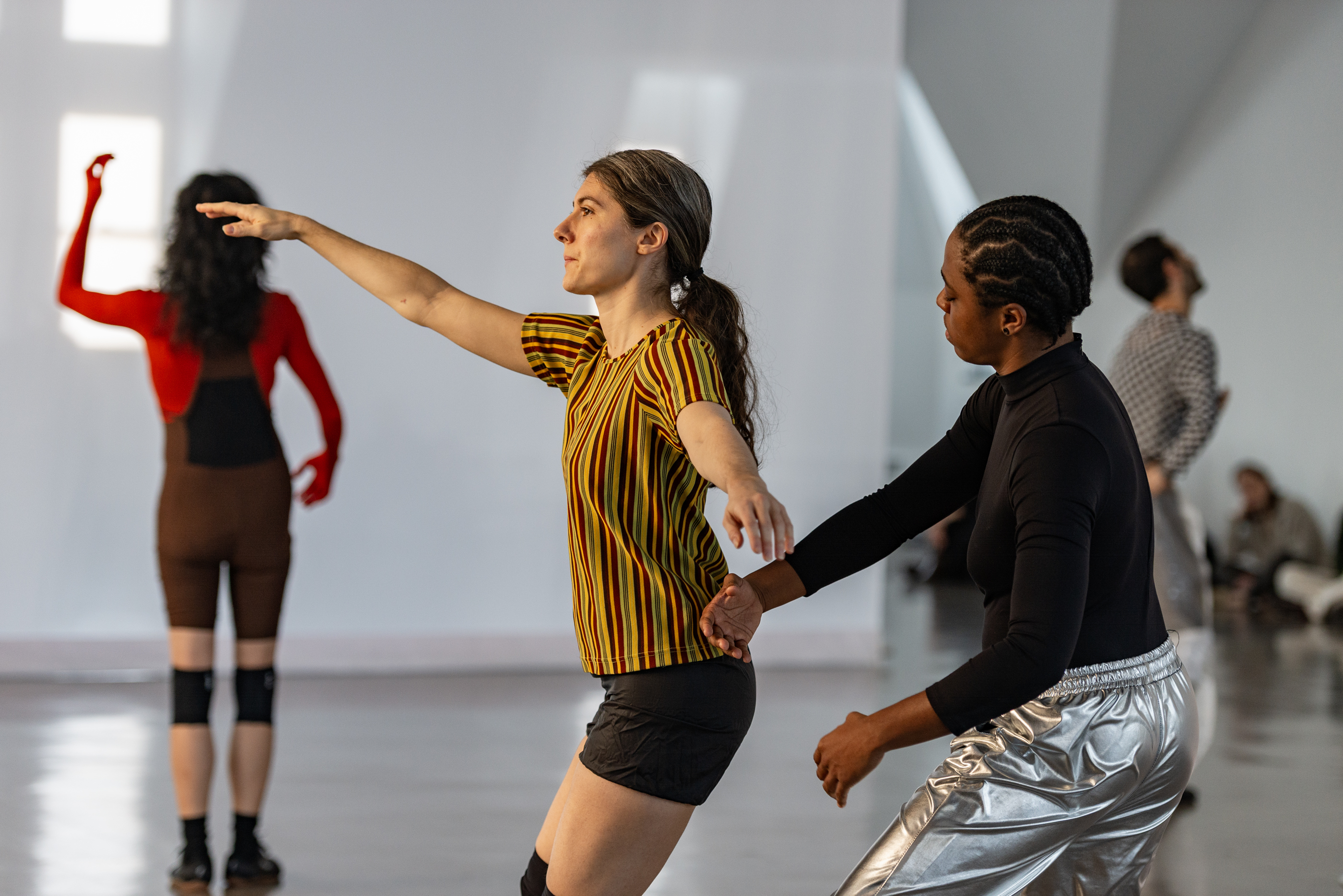 Moriah Evans, Scrimmage, 2025, December 14 performance. Pictured: Varinia Canto Vila, João dos Santos Martins. Photo by Ry Thiel.
