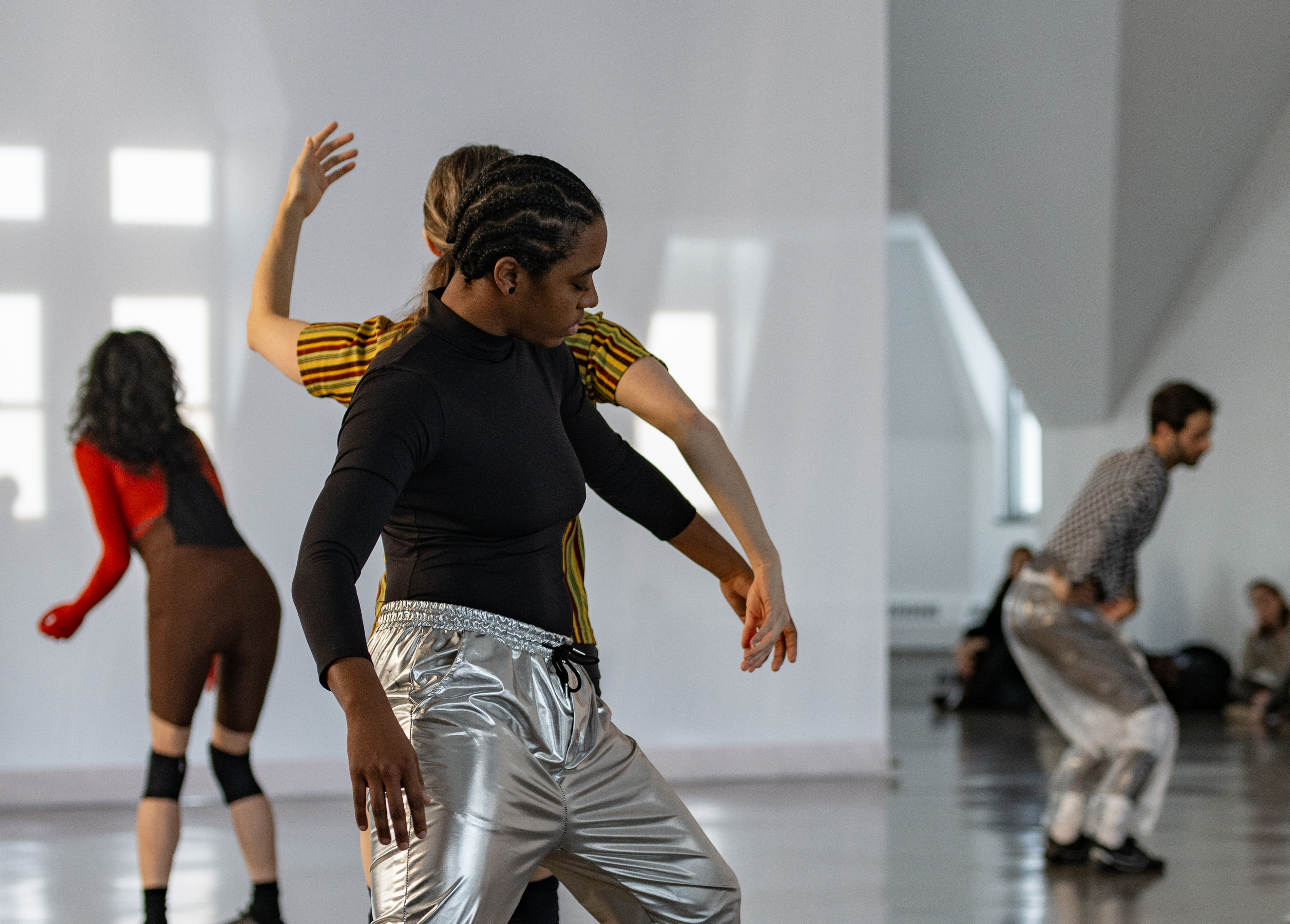 Moriah Evans, Scrimmage, 2025, December 7 performance. Pictured: João dos Santos Martins, Kris Lee, Varinia Canto Vila. Photo by Ry Thiel.