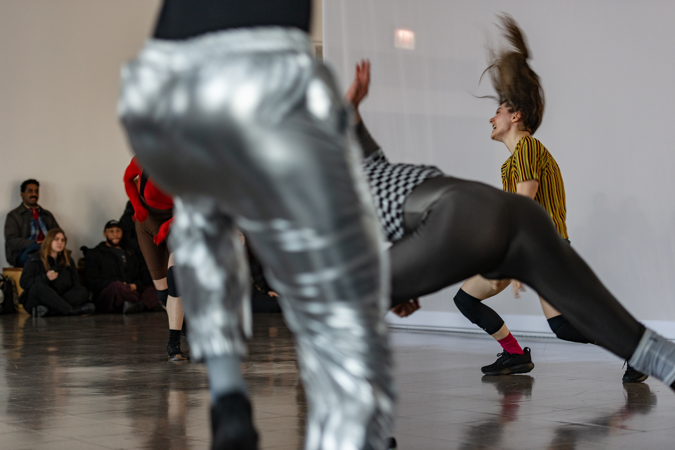 Moriah Evans, Scrimmage, 2025, December 7 performance. Pictured: Kris Lee, João dos Santos Martins. Photo by Ry Thiel.